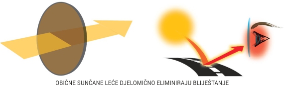 Refleksija uzrokovana refleksijom svjetlosti dovodi do izražene neugodnosti za oči. Kada se prirodno svjetlo odbije o ravnu i glatku površinu (voda, snijeg, led, asfalt, karoserija automobila...) ono stvara refleksiju i horizontalne vibracije te stvara neugodno bliještanje koje se zove polarizirana svjetlost.